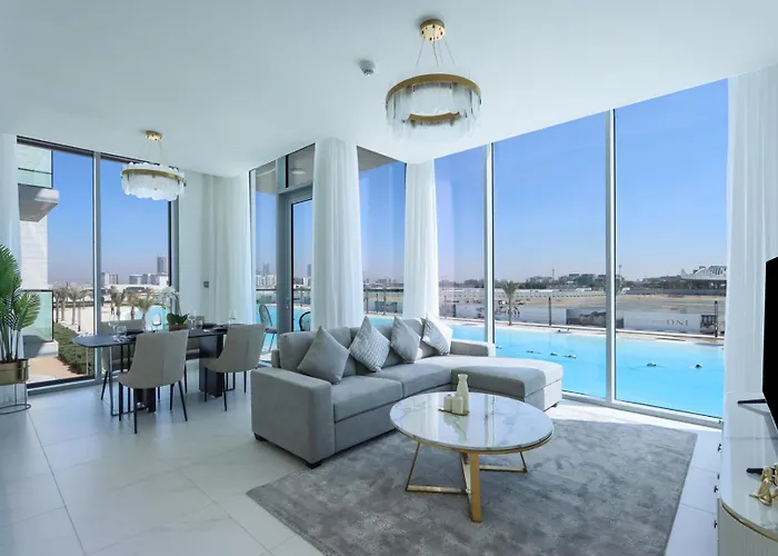 Appartement Lagoonview 2Br District One à Dubaï est situé à moins de 14 minutes de marche de Course de chameaux et dispose d'une piscine privée. La résidence spacieuse propose également un Wi-Fi et un parking privé gratuit.